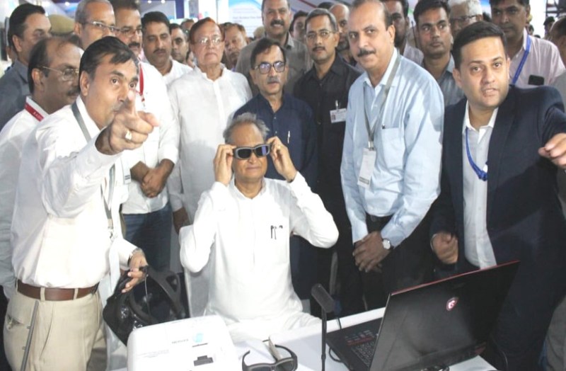 आखों पर काला चश्मा और सामने चलती हाईटेक फिल्म। जयपुर में हुए एक कार्यक्रम के दौरान मुख्यमंत्री अशोक गहलोत कुछ इसी अंदाज़ में नज़र आये। मौक़ा था पूर्व प्रधानमंत्री भारत रत्न स्वर्गीय राजीव गांधी की 75 वीं जयंती के अवसर पर बिड़ला सभागार में हुए ‘राजीव राजस्थान इनोवेशन विज़न’ समारोह का। कार्यक्रम का आयोजन सूचना प्रौद्योगिकी एवं संचार विभाग, श्रम रोजगार एवं कौशल विभाग, पंचायती राज विभाग, ऊर्जा विभाग तथा स्वायत्त शासन विभाग के संयुक्त तत्वावधान में हुआ।