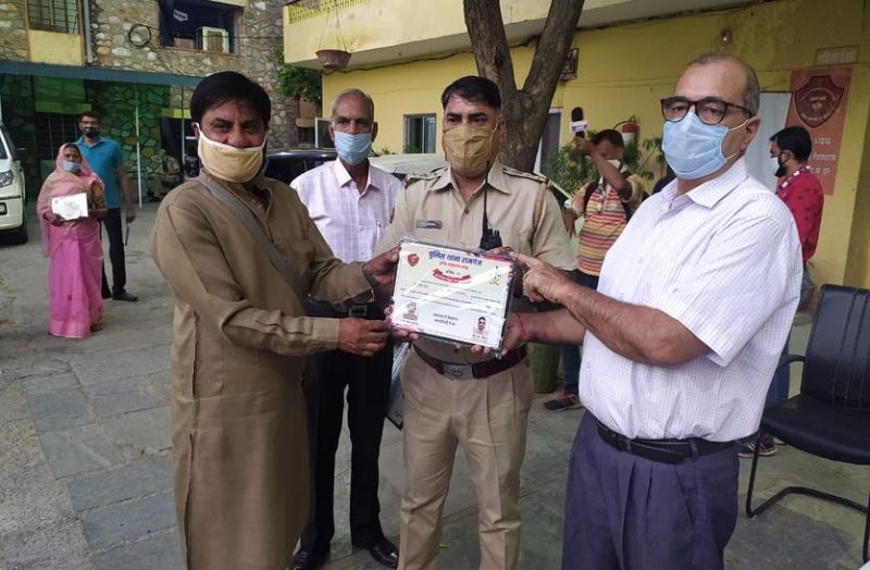 जयपुर। उपायुक्त डॉ. राजीव बजाज (Dr. Rajiv Bajaj) ने कोविड-19 के चलते लॉकडाउन के दौरान पुलिस थाना रामगंज (Police thana ramganj) के आम लोगों की ओर से सक्रिय भूमिका निभाते हुए कोरोना वॉरियर्स के रूप में पुलिस प्रशासन के साथ मदद की करने पर उन्हें सोमवार को प्रशस्ति पत्र देकर सम्मानित किया। एसएचओ बनवारी लाल मीणा ने बताया कि जिन्होंने विपरीत परिस्थितियों में पुलिस का सहयोग किया, उन्हें सम्मानित किया गया। कार्यक्रम में सहायक पुलिस आयुक्त सुरेश चंद जांगिड़ और थाना अधिकारी बनवारी लाल मीणा ने कोरोना वॉरियर्स को प्रशस्ति पत्र दिए। एसएचओ बनवारी लाल मीणा ने बताया कि जिन्होंने विपरीत परिस्थितियों में पुलिस का सहयोग किया, उन्हें सम्मानित किया गया।