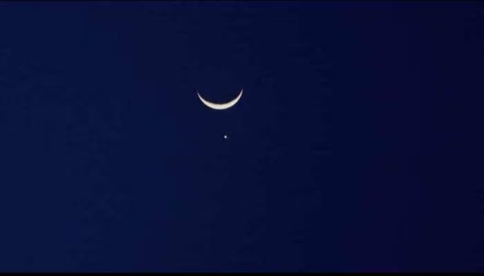 अर्धचंद्र के नीचे बीच में एक तारा चमकता हुआ नजर आया है। ऐसा अद्भुत नजारा देश के कई शहरों में दिखाई दिया। जब लोग रमजान की शाम को चांद देखने के लिए आसमान की ओर देखने लगे, तब यह अद्भुत नजारा देखने को मिला। हालांकि, चंद्रमा के बहुत करीब दिखाई देने वाला तारा जैसा प्रकाश शुक्र है।
