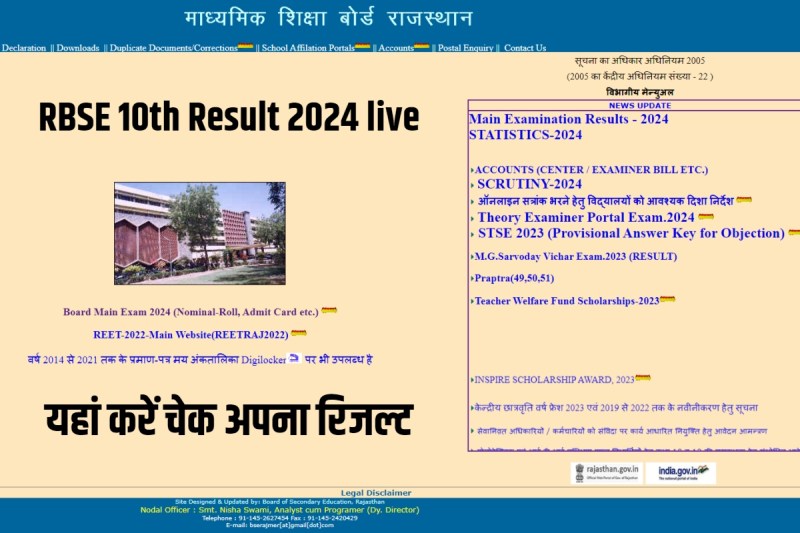 राजस्थान बोर्ड 10th रिजल्ट चेक करने के लिए स्टूडेंट्स को रोल नंबर की आवश्यकता होगी। उसे डायरेक्ट लिंक ऑफिशियल वेबसाइट rajeduboard.rajasthan.gov.in पर डाले। इसके बाद आप वेबसाइट पर जाकर अपना परिणाम देख पायेंगे।