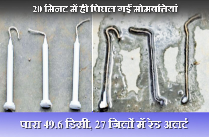 सीकर में पिछले 1 हफ्ते से पारा 45 डिग्री से ऊपर चल रहा है। इस भीषण गर्मी में जब मोमबत्तियां जमीन पर रखीं तो मात्र 20 मिनट के भीतर ही वे पिघल गईं।