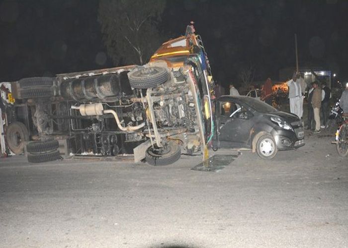 कस्बे के कोटकासिम चौराहे पर जैसे ही कार को तिजारा की ओर घुमाने लगे तो उसी समय अलवर से सुनाम (पंजाब) के लिए प्याज भरकर पीछे से आ रहा केन्टरा ट्रक अनियन्त्रित होकर चलती कार पर जा गिरा।