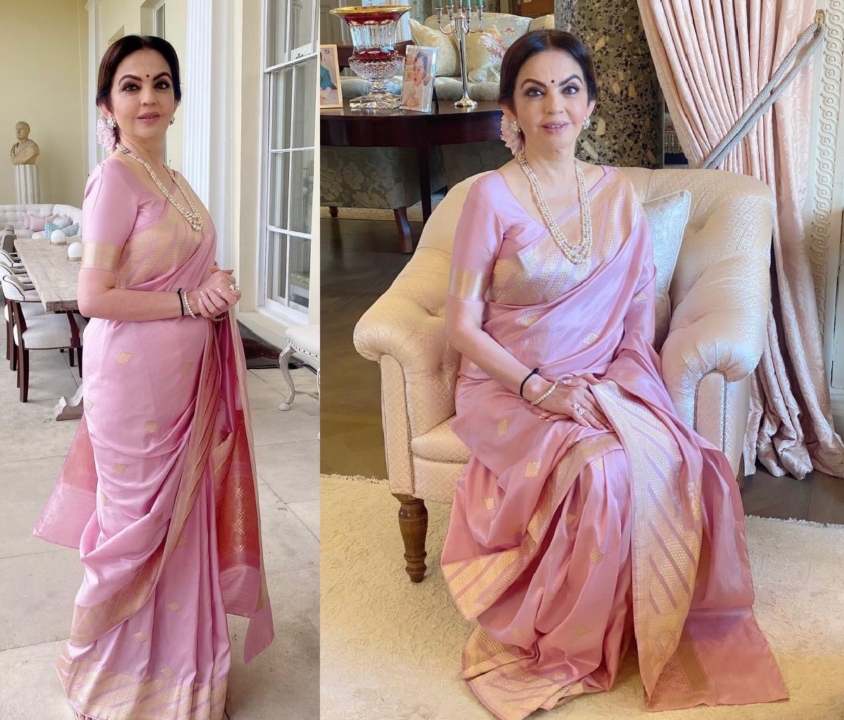 Nita Ambani Wore Beautiful Banarasi Saree : रिलायंस फाउंडेशन की चेयरपर्सन नीता अंबानी ने आरआईएल की 46वीं एजीएम में रिलायंस परिवार को वर्चुअली संबोधित किया। इस अवसर पर नीता अंबानी ने बेहद खूबसूरत बनारसी साड़ी पहनी थी। यह बनारसी साड़ी नीता अंबानी के व्यक्तित्व को चार चांद लगा रही थी। इस बनारसी साड़ी को मास्टर कारीगर इकबाल अहमद ने बुना था। नीता अंबानी ने हाथ से बुनी बनारसी ब्रोकेड साड़ी पहनकर कार्यक्रम की शोभा बढ़ाई। यह उत्तम लैवेंडर बुनाई वाराणसी की सदियों पुरानी शिल्प कौशल का नमूना है।