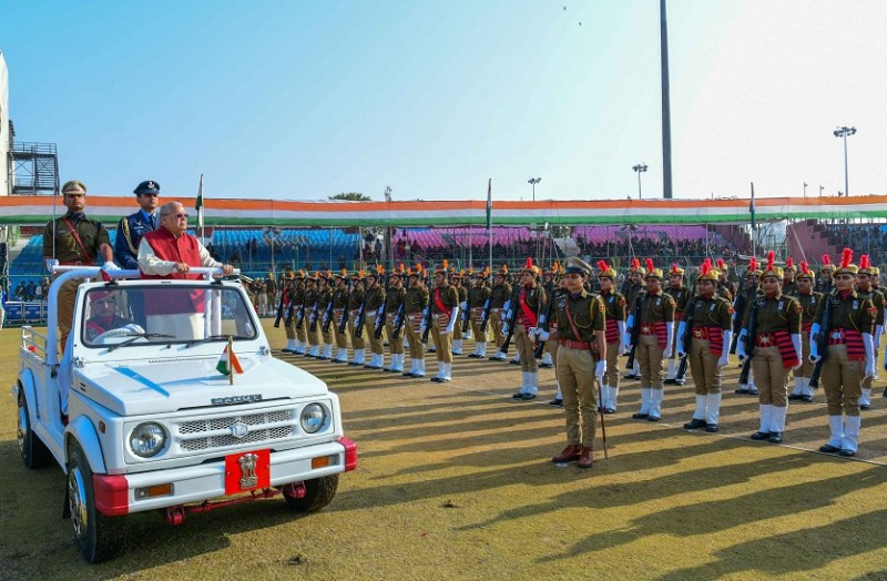 जयपुर. राज्यपाल कलराज मिश्र ने 75वें गणतंत्र दिवस के अवसर पर आज सवाई मानसिंह स्टेडियम में आयोजित राज्य स्तरीय समारोह में राष्ट्रीय ध्वज फहराया। उन्होंने इसके बाद परेड का निरीक्षण किया और सलामी गारद द्वारा प्रस्तुत मार्च पास्ट की सलामी ली। मुख्यमंत्री भजन लाल शर्मा, विधानसभा अध्यक्ष प्रो. वासुदेव देवनानी और अन्य गणमान्यजन भी समारोह में उपस्थित रहे।