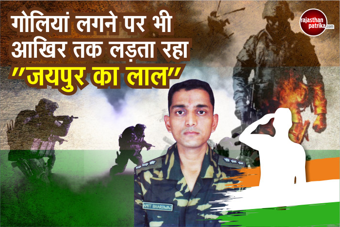 जयपुर। दुश्मन ने अचानक हमला किया। दोनों तरफ से गोलियां चलने लगी। दुश्मनों की संख्या बहुत ज्यादा थी फिर भी डट कर मुकाबला किया। दोनों पैरों में गोलियां लगी, खून की धाराएं बहने लगी, फिर भी पीछे हटने के बजाए दुश्मनों से मुकाबला करना ही धर्म समझा और वीरता से लड़ते हुए मातृभूमि के चरणों में प्राण न्यौछावर कर दिए। ऐसे थे जयपुर के जांबाज लेफ्टिनेंट ‘अमित भारद्वाज‘।