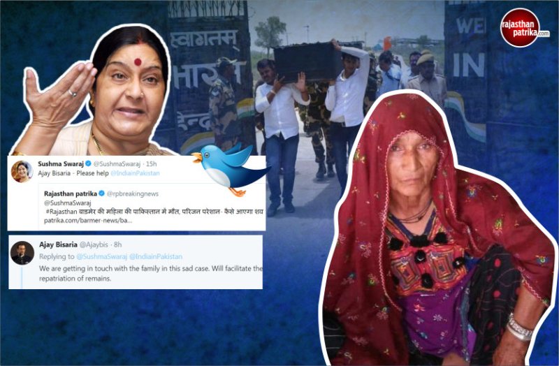 विदेश मंत्री सुषमा स्वराज एक बार फिर सरहद पार फंसे किसी हिन्दुस्तानी नागरिक के लिए 'तारणहार' बन गईं। लेकिन इस बार मामला किसी जीवित व्यक्ति का नहीं बल्कि एक शव का था। स्वराज की ओर से उनके ऑफिशियल ट्विटर हैंडल पर किए गए महज़ एक रि-ट्वीट से पाकिस्तान फ़ौरन हरकत में आ गया। नतीजा ये रहा कि सरहद के उस पार राजस्थान की बाड़मेर निवासी रेशमा के शव को हिन्दुस्तान लौटाने की प्रक्रिया ने रफ़्तार पकड़ ली। 27 जुलाई को स्वराज की ओर से हुए रि-ट्वीट के चौथे ही दिन यानी 31 जुलाई को रेशमा का शव उसके वतन पहुंच गया और उसे सुपुर्द-ए-ख़ाक के लिए देश की माटी नसीब हुई।