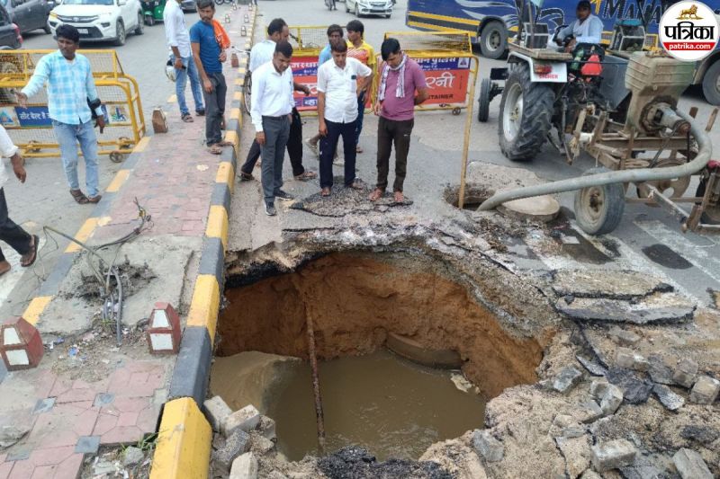 30 फीट धंसी सड़क (फोटो- पत्रिका)