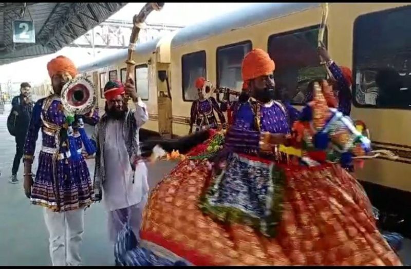 पावणों को लेकर जयपुर पहुंची शाही ट्रेन, रेलवे स्टेशन पर बिखरे राजस्थानी लोकरंग