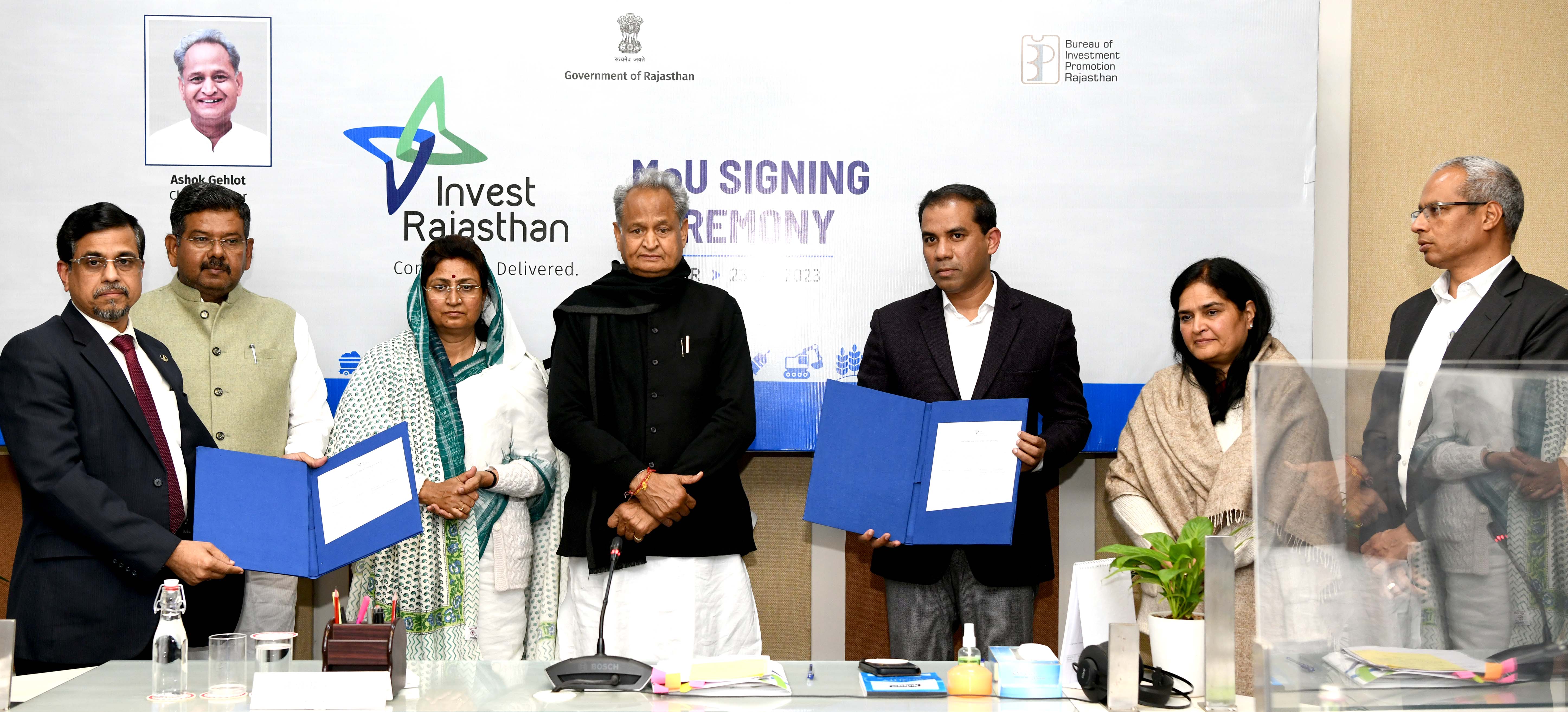 जयपुर। इन्वेस्ट राजस्थान के अंतर्गत राज्य में 1.36 लाख करोड़ रुपये के निवेश के लिए राजधानी में मुख्यमंत्री आवास पर एमओयू साइन किए गए हैं।