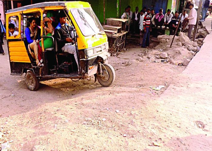 गत दिनों सड़क के टुकड़े का निर्माण कराए जाने के दौरान गांधी चौक इलाके में सड़क पर मिटटी का ढेर पड़ा छोड़ दिया।