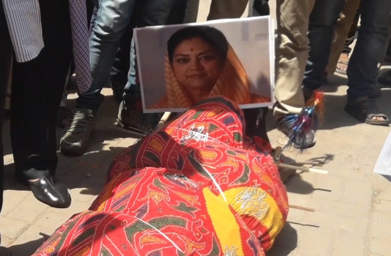 जयपुर। राजस्थान रोडवेज के श्रमिक संगठनों (एटक, सीटू, इंटक, आरएसआरटीसी रिटायर्ड एम्पलाइज एसोसिएशन, बीजेएमएम, राजस्थान रोडवेज सेवानिवृत्त कर्मचारी कल्याण समिति) के संयुक्त मोर्चे ने लिखित समझौता होने के बावजूद मांगों को नहीं मानने पर अर्धनग्न होकर जयपुर में प्रदर्शन कर मुख्यमंत्री वसुंधरा राजे के पुतले की शवयात्रा निकाली ।