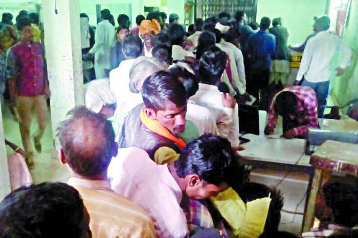 जलवाड़ा. बड़ौदा क्षेत्रीय ग्रामीण बैंक में भीड़ कम नहीं हो रही है। शुक्रवार को भी बैेंक खुलने से पूर्व ही नकदी लेने व जमा कराने वालो की भीड़ लग गई थी।