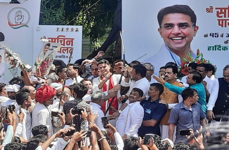 जन्म दिवस समारोह में प्रदेशभर के जिलों से हजारों की संख्या में लोग पहुंचे। जयपुर में दर्जनों चौराहों पर पायलट समर्थकों ने जन्म शुभकामना के होर्डिंग,बैनर और पोस्टर लगाए। हर बार की तरह इस बार भी सचिन पायलट के जन्मदिन पर जो केक काटा गया, वो उनकी उम्र के जितने वजन यानी 45 किलो का केक काटा गया। केक मोती डूंगरी गणेश मंदिर के लड्डू के रूप में बनाया गया।