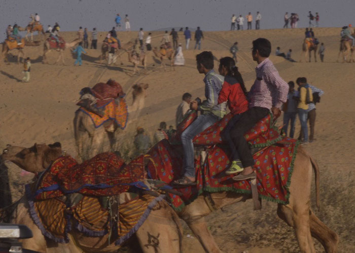 मखमली धोरों पर देश-विदेश से यहां आए पर्यटकों के हुजूम ने कैमल सफारी का लुत्फ उठाया। बड़ी संख्या में सैलानियों ने ऊट गाडिय़ों व ऊंटों पर बैठकर रेत के समुन्दर में भ्रमण का आनंद लिया।