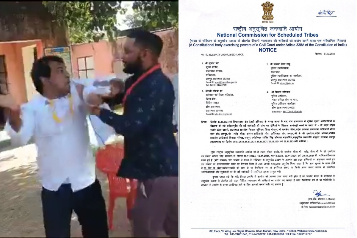 Samrawata Slapping Incident: राष्ट्रीय अनुसूचित जनजाति आयोग ने समरावता थप्पड़ कांड को लेकर सख्त रुख अपनाते हुए राजस्थान के मुख्य सचिव, डीजीपी उत्कल रंजन साहू, टोंक जिला कलेक्टर सौम्या झा और एसपी को नोटिस जारी किया है। यह नोटिस 4 दिसंबर को जारी हुआ, जिसमें आयोग ने तीन दिन के अंदर मामले की तथ्यात्मक रिपोर्ट मांगी है।