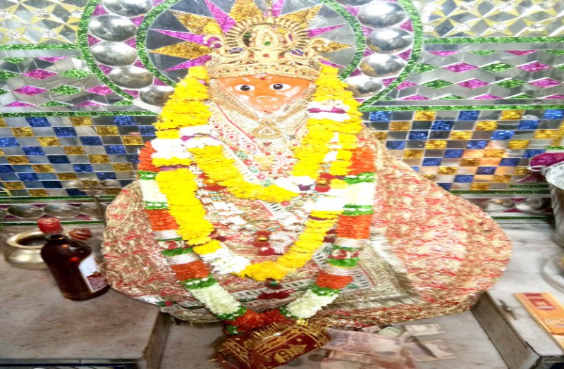 किंवदंती है कि माता की मूर्ति के मदिरा का भोग लगने की बात सुनकर 16वीं सदी में मुगल बादशाह अकबर ऊंटों पर मदिरा का जखीरा लेकर आया था। लेकिन हर बार मंदिर की आधी चढ़ाई में ही ऊंटों पर रखी मदिरा खाली हो जाती थी। ऐसा देख यहां मुगल बादशाह अकबर को भी झुकना पड़ा था। इसके बाद अकबर ने मंदिर का जीर्णोद्धार करवाया था। मूर्ति पहाड़ी पर एक गुफा में स्थित है। जिस तक पहुंचने के लिए सात द्वार से होकर गुजरना पड़ता है। इससे पहले यहां सिर्फ एक द्वार हुआ करता था। जबकि शेष छह द्वार मुगल कालीन हैं। कहा जाता है कि ये द्वार अकबर ने ही बनवाए थे। औरंगजेब के समय भी यह सिलसिला चलता रहा।