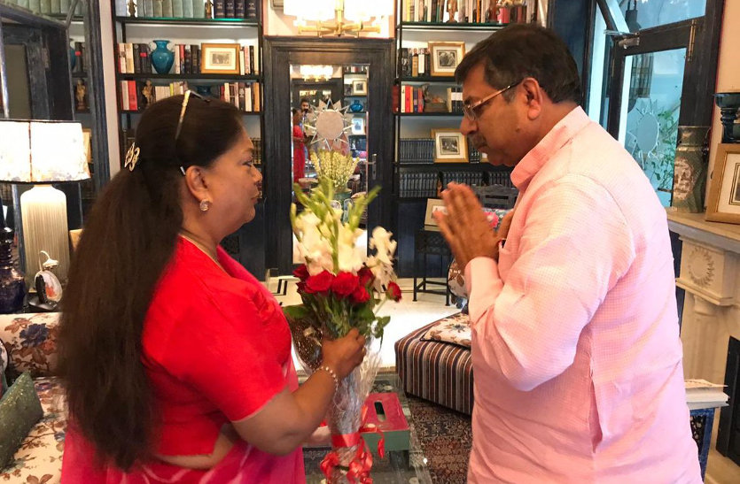 पूर्व मुख्यमंत्री से मिलने पहुंचे पूनिया, राजे ने ट्वीटर पर शेयर की मुलाकात