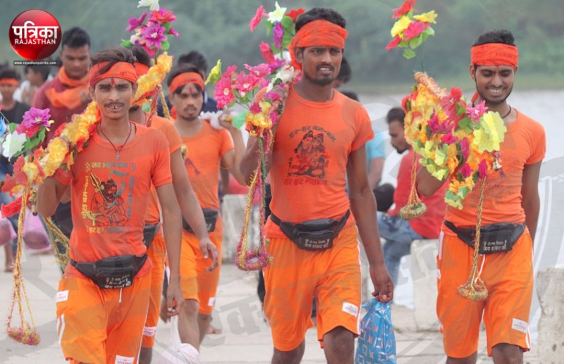 सावन के तीसरे सोमवार पर नाग पंचमी के साथ त्रियोग का संयोग होने से शहर में कावड़ यात्राओं की धूम रही। गलता में रविवार सुबह से ही कावडियों का रैला उमड़ना शुरू हो गया था। सुबह भी सैकड़ों कावड़ यात्रााएं ( kawad yatra ) जयकारों के साथ रवाना हुई। हजारों की संख्या में भगवा वस्त्र धारण किए कावडि़एं गलता तीर्थ में स्नान करने के बाद पूजा-अर्चना कर कावड़ों में जल भर कर बोल बम, ताड़क बम के जयकारें लगाते हुए अपने गंतव्य के लिए रवाना हुए। गलता पीठाधीश्वर अवधेशाचार्य ने आरती के बाद कावडियों को गंतव्य के लिए रवाना किया। इस दौरान गलता तीर्थ बोल बम ताड़क बम के जय घोष से गुंजायमान हो उठा। कावड़ यात्राओं से पूरा शहर भगवामय नजर आया। परकोटे के साथ ही दिल्ली रोड, अगरा रोड जेएलएन मार्गे टोंक रोड भी भगवा रंग में रंगी हुई नजर आई। जगह जगह कावड़ यात्राओं का स्वागत किया गया।