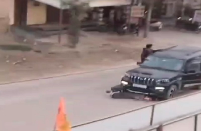 स्कॉपियो ने पहले मारी टक्कर, फिर बाइक को घसीटती ले गई, वीडियो हुआ वायरल