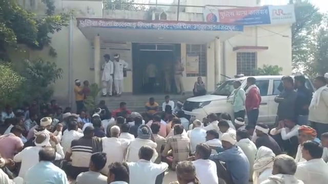 थाने के बाहर धरना दे रहा पीड़ित पक्ष