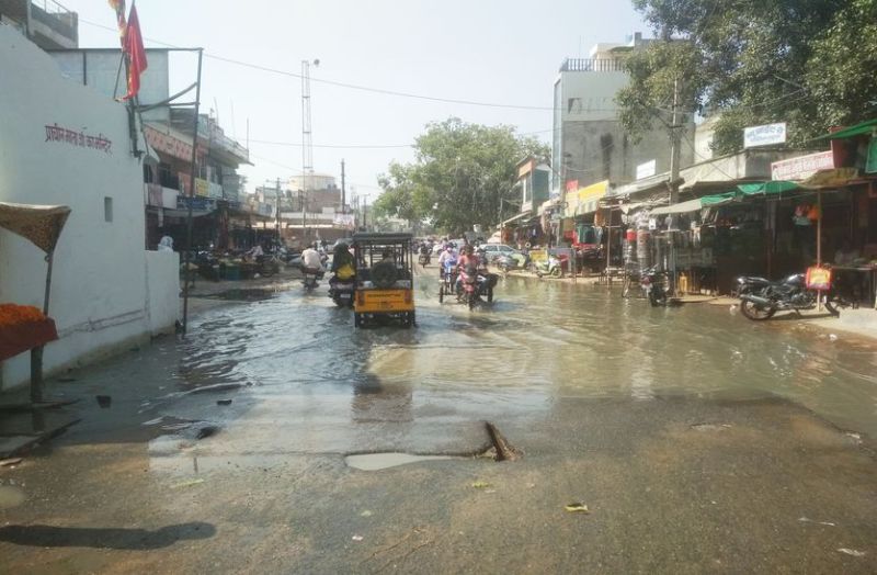 सीवर लाइन चोक...मालपुरा गेट पर सड़क बनी नाला