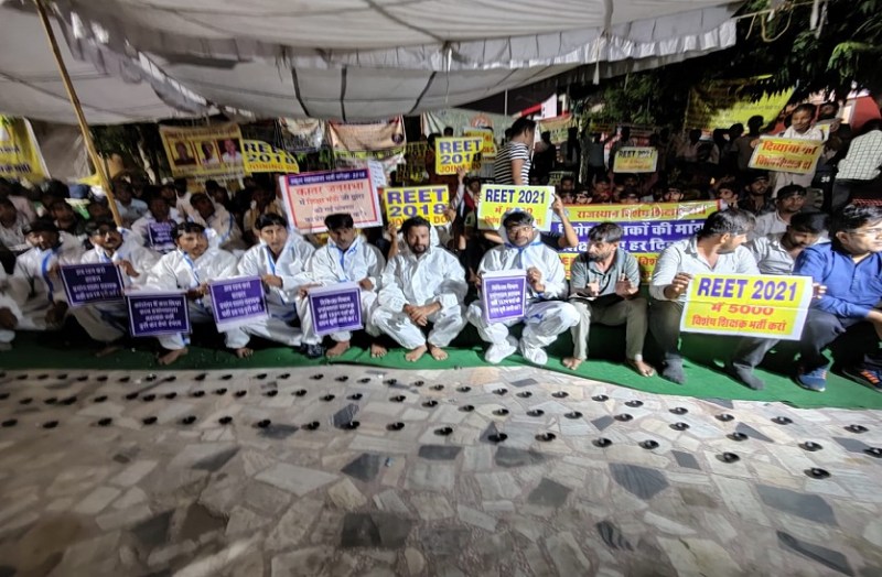 राजस्थान एकीकृत बेरोजगार महासंघ के प्रदेशाध्यक्ष उपेन यादव के नेतृत्व में युवा बेरोजगार पिछले पिछले 21 दिन से शहीद स्मारक पर सभी विभागों में नई भर्तियां निकलवाने ,सभी लंबित भर्तियों को पूरा करवाने, प्रतियोगी भर्ती परीक्षाओं में पेपरलीक करने वालों और नकलचियो, डमी अभ्यार्थियों और फर्जी डिग्री डिप्लोमा वालों के खिलाफ जल्द से जल्द गैर जमानती अध्यादेश लाए जाने सहित विभिन्न मांगों को महापड़ाव डाल कर बैठे हैं। यह युवा रीट और एसआई भर्ती परीक्षा की जांच सीबीआई से करवाए जाने की भी मांग कर रहे हैं। महासंघ के प्रदेशाध्यक्ष उपेन यादव ने कहा कि जब तक हमारी मांग पूरी नहीं होती महापड़ाव जारी रहेगा हम भूखे रह कर काली दीवाली मनाएंगे और जल्द ही उत्तर प्रदेश में प्रिंयका गांधी कर रैली में कूच कर विरोध जताएंगे।