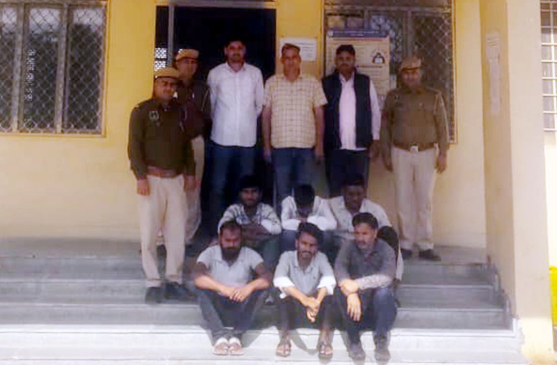 पुलिस ने सीताराम नायक निवासी मंगलपुरा तहसील लाडनूं, आनन्द कुमार नायक निवासी आनन्दगढ़, सागर वाल्मिकी निवासी हरिजन मौहल्ला मण्डावरी, हरिदास स्वामी निवासी गांव मालगांव लाडनूं, हनुमान मल टांक निवासी गांव मंगलपुरा लाडनूं, अर्जुनराम जाट निवासी गांव मुण्डेलो का मौहल्ला खिंयाला तहसील जायल नागौर को गिरफ्तार कर लिया। ये सभी आरोपी हाल में होटल सनसाईन व अर्जुन पैलेस रजत पथ मानसरोवर इलाके में रहते है।