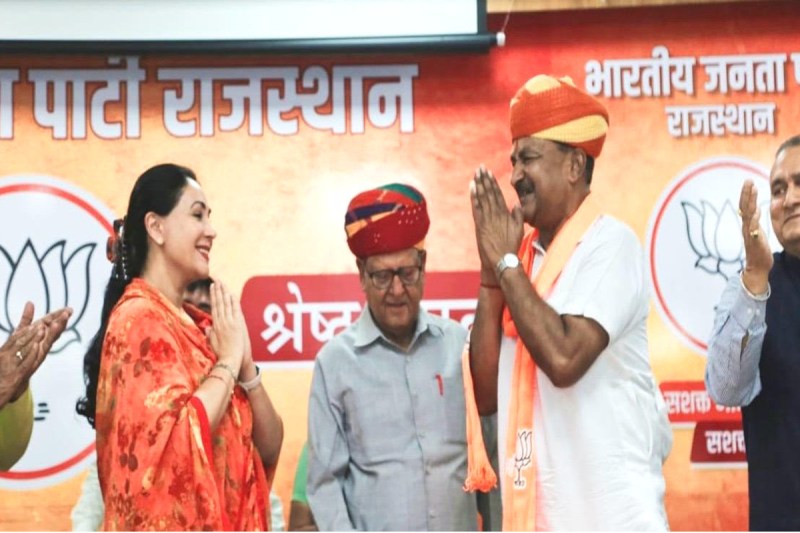 [typography_font:14pt]कांग्रेस छोड़ भाजपा में शामिल हुए सीताराम अग्रवाल की जॉइनिंग के दौरान एक दिलचस्प तस्वीर भी नज़र आई। दरअसल, सदस्यता ग्रहण कार्यक्रम में अग्रवाल को डिप्टी सीएम दिया कुमारी ने केसरिया दुपट्टा पहनाकर जॉइनिंग करवाई। दिया कुमारी और सीताराम अग्रवाल इससे पहले चुनावी मैदान में आमने-सामने हो चुके हैं।