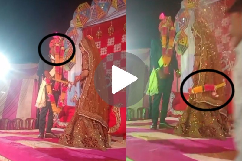 आपने शादियों के वीडियो तो खूब देखे होंगे, लेकिन यह कुछ अलग है। यही वजह है कि इसे इंस्टाग्राम पर अब तक 7.5 मिलियन लोग देख चुके हैं। इसे 82 हजार से ज्यादा लाइक्स मिले है और ढेरों लोगों ने फनी कमेंट्स किए हैं। यह वीडियो शादी की स्टेज का है। वीडियो में दूल्हा और दुल्हन स्टेज पर खड़े हैं। इसके बाद दुल्हन दूल्हे को वरमाला उछालकर डालती है, लेकिन माला दूल्हे के साफे की किलंगी पर ही अटक जाती है और बेचारे दूल्हे का चेहरा ही ढक जाता है।