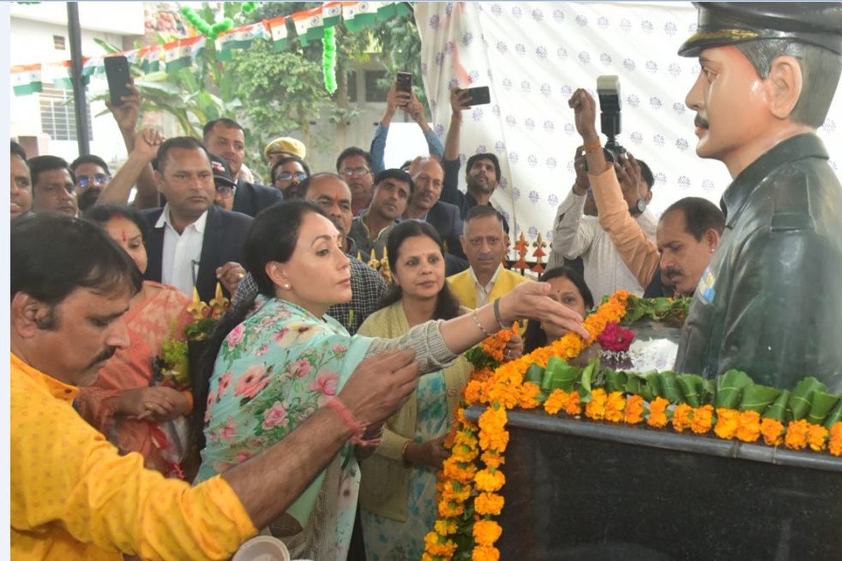 जयपुर. झोटवाड़ा, खातीपुरा रोड स्थित पार्क में शहीद मेजर आलोक माथुर की मुर्ति का गुरुवार को अनावरण किया गया। शहीद मेजर आलोक माथुर मेमोरियल समिति की ओर से हुए समारोह में उप मुख्यमंत्री दिया कुमारी ने मुर्ति का अनावरण किया। उन्होंने देश के वीरों को श्रद्धा सुमन अर्पित करते हुए कहा कि आर्मी परेड का जयपुर में होना राजस्थान के लिए गौरव का विषय है। उन्होंने शहीद की स्मृति में पौधरोपण भी किया किया। समिति के सचिव मुकेश दत्त माथुर ने बताया की 21 वर्षों से शहीद की मूर्ति स्थापित करने का प्रयास किया जा रहा था, हाल ही में इस स्मारक का जीर्णोद्धार हुआ और शहीद की मूर्ति स्थापित की गई।
