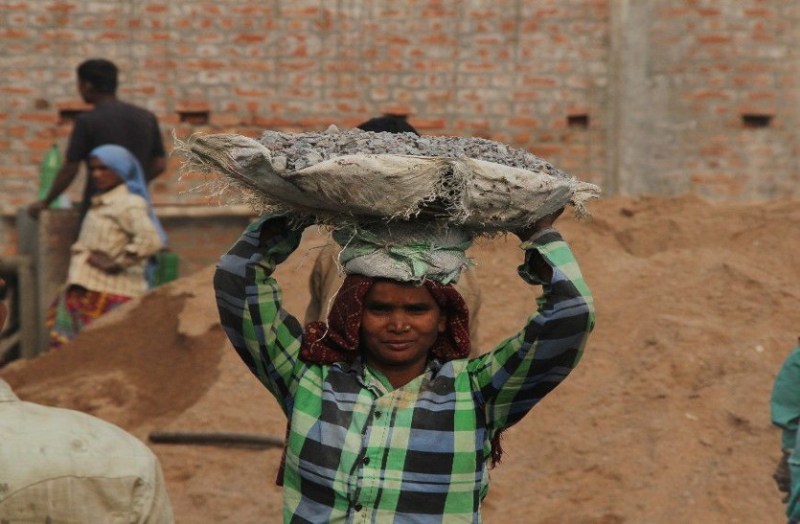 मजदूर महिला स्तनपान करवा कर बच्चे को एक बल्ली से बंधे चुन्नी के झाूले में सुला रही थी। गर्भवती मजदूर महिला के पति ने उसके सिर पर ईंटों से भरी तगारी उठवा दी थी। मेहनत, संतोष, आत्मविश्वास। उनमें कोई हीन भावना नहीं थी।
