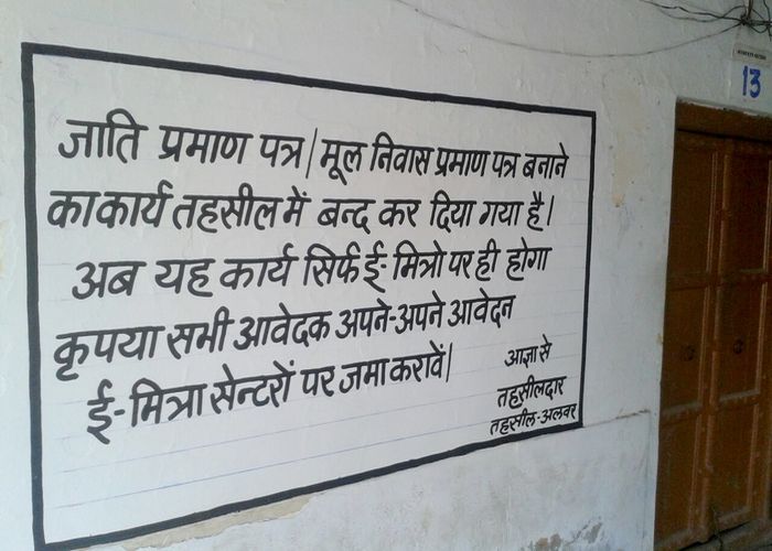 तहसील में जाति व मूल निवास प्रमाण पत्र बनाने के नाम पर चल रही दलाली के खुलासे के बाद मंगलवार को तहसीलदार अनुराग हरित ने तहसील परिसर में ई-मित्रों पर प्रमाण पत्र बनाने की सूचना लिखवाई।
