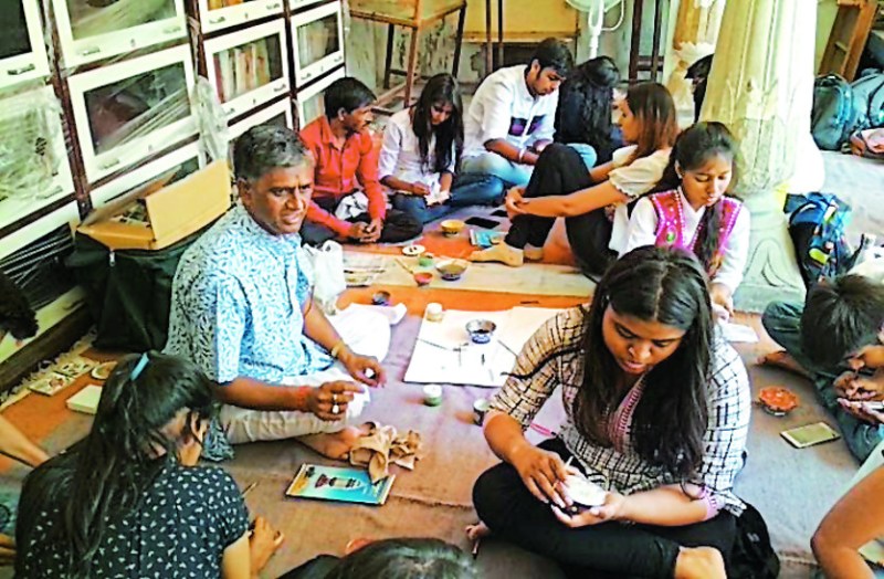 जयपुर . गुलाबी नगरी को कला-कृति के लिए देश के सबसे प्रसिद्व शहरों में से एक माना जाता है और इसकी संस्कृति, विरासत, कला और शिल्प के समृद्ध इतिहास के चाहने वालों को यही बात यहां खींच लाती है। यहां के कला गुरूओं से उनकी कला की बारीकियों को सीखने के सीतापुरा स्थित आयोजन स्कूल ऑफ आर्टस के ५० विधार्थियो के दल ने बीते १४ अप्रेल से १८ अप्रेल तक चौकड़ी मोदीखाना में शिल्प गुरूओं से कई कलाओं को सीखकर अपने कला ज्ञान को बढ़ाया और इसे आगे अन्य लोगों तक पहुंचाने का प्रण भी लिया।