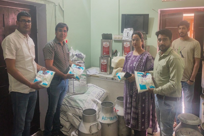 कोटपूतली-बहरोड़. मिलावटी खाद्य पदार्थों के खिलाफ बड़ी कार्रवाई करते हुए खाद्य सुरक्षा विभाग की टीम ने बढिय़ाली की ढाणी एवं मंढा-प्रागपुरा में छापा मारा। इस दौरान हिमांशु मावा स्टोर और उससे जुड़े मावा प्लांट से 175 किलो मिल्क पाउडर, 30 किलो वनस्पति और 715 किलो मिलावटी मावा बरामद किया गया। प्रशासन ने मौके पर ही यह मिलावटी सामान नष्ट करवाकर प्लांट को सीज कर दिया।