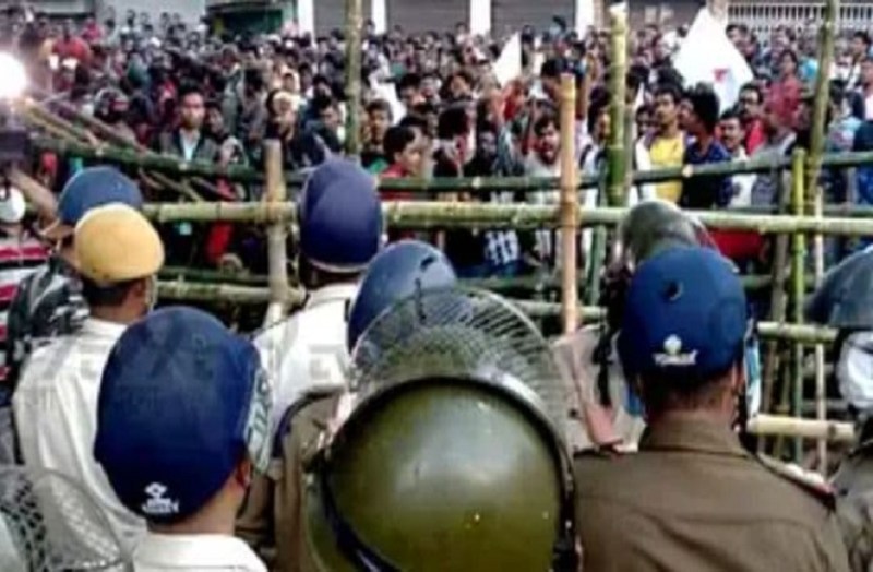 आमता थाना के समक्ष उग्र आंदोलन करते वामपंथी छात्र संगठन।