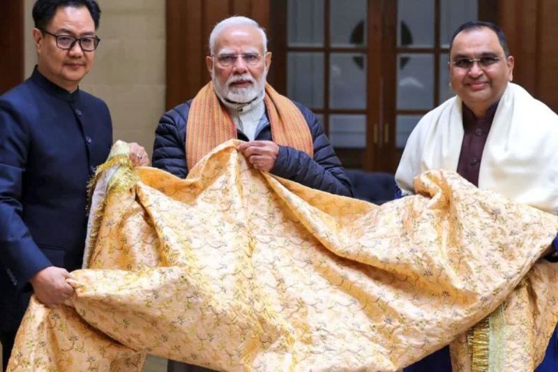 जयपुर। प्रधानमंत्री नरेंद्र मोदी की ओर से भेजी गई चादर आज अजमेर में दरगाह में पेश की जाएगी। मोदी से मिली चादर लेकर केंद्रीय मंत्री किरेन रिजिजू आज सुबह 7:45 बजे जयपुर एयरपोर्ट पर पहुंचे। अजमेर में रिजिजू 813 वें उर्स के मौके पर 11 बजे यह चादर ख्वाजा मोइनुद्दीन चिश्ती की दरगाह शरीफ पर पेश करेंगे। केंद्रीय मंत्री किरेन रिजिजू के आगमन के मद्देनजर सभी तैयारियां पूरी की जा चुकी हैं।