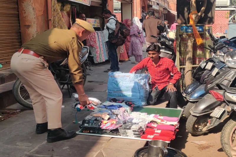 चौड़ा रास्ता में तीन सुरक्षाकर्मी घूमते मिले। अतिक्रमण करने वालों से समझाइश करते दिखाई दिए, वहीं ठेले वालों को बाजार से हटाते मिले। पीछे सुरक्षाकर्मी समझाइश करते आ रहे थे, उन्हें देख आगे फुटपाथ व सड़क पर दुकानें लगाने वाले सामान समेटते दिखे। वहीं ठेले वाले गलियों में ठेला ले जाते दिखाई दिए। चौड़ा रास्ता में एक ठेले वाले से समझाइश कर रहे पुलिसकर्मी ने बताया कि एक दिन पहले ही ठेला जब्त किया था, आज दूसरा ठेला लाकर लगा लिया। यही हाल जौहरी बाजार में देखने को मिला, यहां दो सुरक्षाकर्मी अतिक्रमण हटाने के लिए समझाइश करते नजर आए।