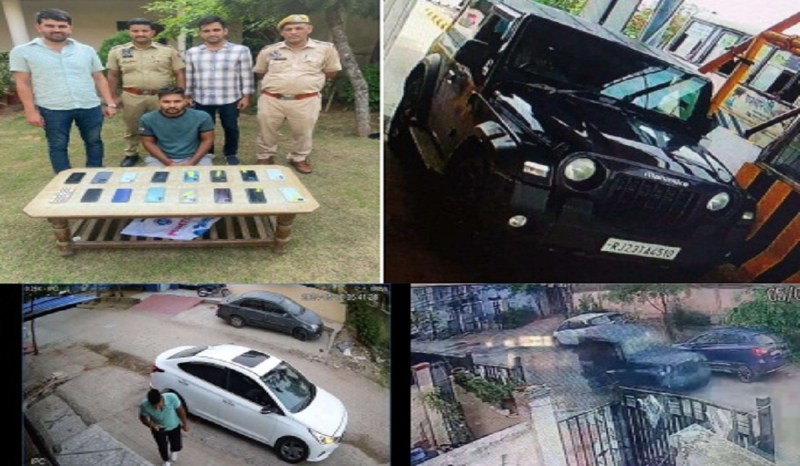 पुलिस ने बताया कि एसआर बॉयज पीजी में रहने वाले परिवादी ने बताया कि 4 जुलाई को वह कमरे में सो रहा था। 5 जुलाई को सोकर उठा तो उसका फोन गायब था। आस-पास के लड़कों से पूछा तो पता चला कि 9 लड़कों के फोन चोरी हो चुके है। सीसीटीवी कैमरे चैक किए तो पता लगा की काली थार से एक व्यक्ति आया और चोरी करके चला गया। पुलिस ने 100 से अधिक सीसीटीवी कैमरों को चैक कर थार का रूट चैक किया। रानौली सीकर टोल प्लाजा से गुजरना सामने आया। थार नम्बरों के आधार पर पता किया तो सामने आया कि उसने पवन बिजारणियां को किराए पर दी थी। पुलिस ने आरोपी को गिरफ्तार कर उसके कब्जे से मोबाइल बरामद कर लिए।