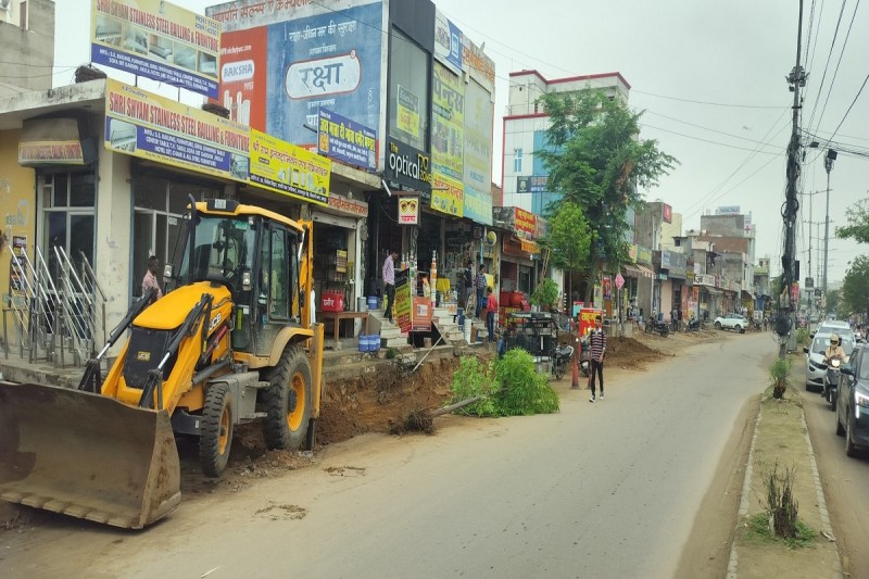 जल्दबाजी में मानसून के दौरान ही सड़क खोद दी गई, जिससे क्षेत्र में जलभराव की स्थिति उत्पन्न हो गई है।
