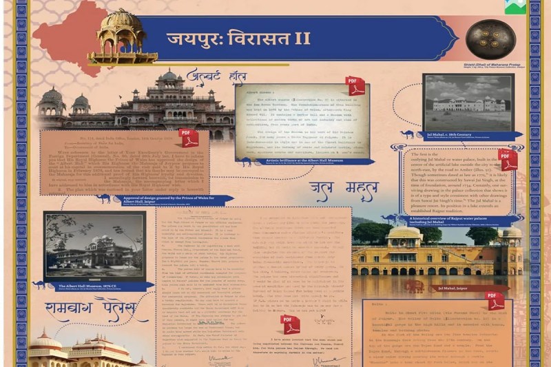 रामनिवास बाग स्थित विश्व प्रसिद्ध अल्बर्ट हॉल की डिजायन प्रिंस ऑफ वेल्स ने स्वीकृत की थी और विशेष पत्र के जरिये सेकेट्री स्टेट ऑफ इंडिया को दी थी। वहीं जयपुर की रियासतकालीन संपत्तियों के बेचान को लेकर मालिकों और स्टेट ऑफ इंडिया के अधिकारियों के बीच पत्राचार हुआ। राष्ट्रीय अभिलेखागार, भारत सरकार की ओर से जवाहर कला केन्द्र में भारत की विश्व विरासत: राजस्थान विषय पर आधारित प्रदर्शनी में 18-19वीं शताब्दी में रियासतकाल के दौरान ढूंढ़ाड़, मेवाड़, मारवाड़ और हाड़ौती के किले, महल, स्मारकों से जुडे दस्तावेज की अनूठी झलक देखने को मिल रही है।