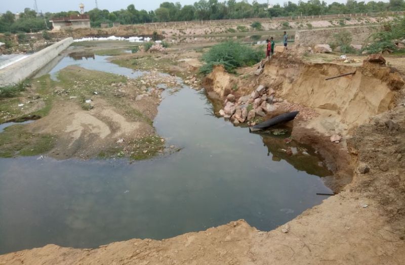 जयपुर। मानसून की बारिश ने द्रव्यवती नदी के घटिया निर्माण की पोल खोलकर रख दी। शहर में शुक्रवार सुबह हुई कुछ घंटे तेज बारिश ने द्रव्यवती नदी के निर्माण कार्य पर सवाल खड़े कर दिए हैं। बारिश के पानी से गोनेर के पास हरि गुरुजी आश्रम की द्रव्यवती नदी पुलिया के पास सड़क पर कटाव लग कर गहरे-गहरे गड्ढे हो गए हैं। वहीं पास में नदी किनारे बनी सड़क में कटाव लगने से सड़क में दरारें चल कर पोल होने लगी है।