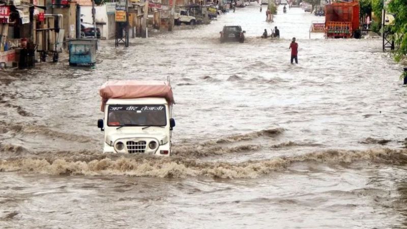 Monsoon 2024 : राजस्थान में मानसून सक्रिय हो गया है। प्रदेश में चार दिन मानसून सुस्त रहा, लेकिन मौसम विभाग की मानें तो अब आने वाले चार दिनों में फिर मानसून सक्रिय हो रहा है। पिछले 24 घंटे में ज्यादातर इलाकों में हल्की बारिश का दौर चला लेकिन जालोर, सीकर, धौलपुर, करौली में जमकर बरसात हुई। मौसम केन्द्र के अनुसार बंगाल की खाड़ी और दक्षिणी उड़ीसा तट पर एक कम दबाव का क्षेत्र बन गया है। ऐसे में आगामी दिनों में राजस्थान के कई जिलों में मूसलाधार बारिश की संभावना है। सोमवार को राज्य के कुछ जिलों में बारिश का दौर चला। माउंट आबू में 60 मिमी बारिश हुई। धौलपुर में सोमवार को बारिश के दौरान गुजरते वाहन।