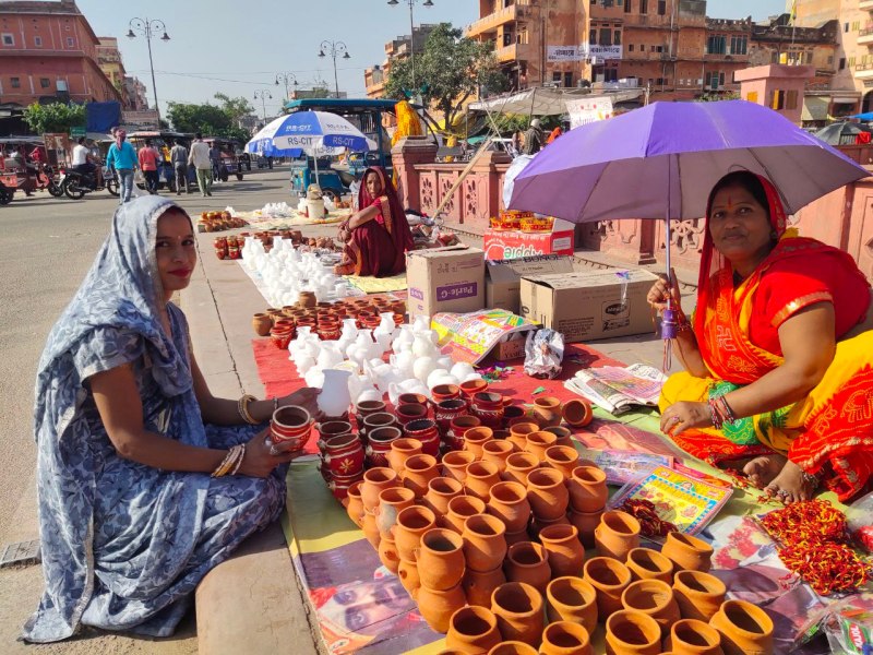 जयपुर. हिंदू पंचांग के अनुसार कार्तिक माह के कृष्ण पक्ष की चतुर्थी तिथि यानी गुरुवार को करवा चौथ का पर्व मनाया जाएगा। इस दिन पति की दीर्घायु और सुख-सौभाग्य की कामना के लिए महिलाएं विभिन्न योग-संयोगों में करवा चौथ का व्रत रखेंगी। सुहागिन महिलाओं खासकर नव विवाहिताओं में करवा चौथ को लेकर भारी उत्साह नजर आ रहा है। बुधवार को व्रत और चौथ माता की पूजा से जुड़ी सामग्री खरीदारी के कारण बाजार में रौनक दिखाई दी। इससे पहले महिलाओं ने सौंदर्य प्रसाधन सामग्री खरीदने के साथ, चीनी के करवे मिट्टी के डिजायनर करवों से लेकर स्टाइलिश साडिय़ों की खरीदी की है। जीवन संगिनी के लिए पतियों ने मोबाइल, साड़ी, आभूषण सहित अन्य तोहफे खरीदे हैं। महिलाएं ब्यूटी पार्लर में जाकर रूप को संवारने के साथ हाथों पर मेहंदी रचाएंगी। गुरुवार को महिलाएं पति की लंबी उम्र के लिए करवा चौथ का व्रत रखेंगी। दिनभर निर्जला व्रत रखकर रात्रि को चंद्रमा को अघ्र्य देकर व्रत का पारण करेंगी। महिलाएं सोलह शृंगार कर दिन में करवा चौथ व्रत की कथा सुनेगी।
