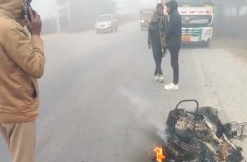 पुलिस ने कोहरे के कारण आमने-सामने वाहन दिखाई नहीं देने से हादसा होने की आशंका जताई है। सरुंड थाने के एएसआई धूडाराम ने बताया कि बाइक पाटन की तरफ से और डंपर कोटपूतली की तरफ से आ रहा था। इस दौरान डंपर ने बाइक को चपेट में ले लिया। डंपर बाइक को 200 मीटर घसीटते हुए ले गया। जिस से बाइक में आग लग गई।