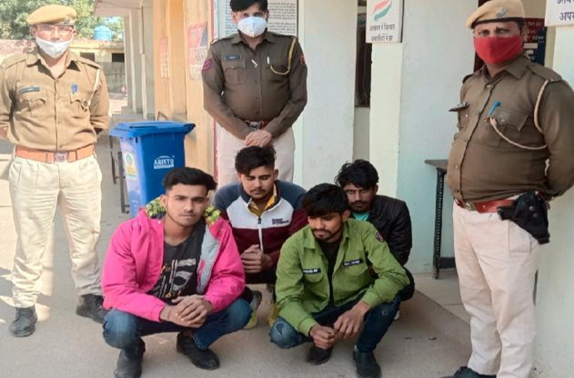 बूंदी एसपी यादव ने बताया कि जयपुर के विश्वकर्मा में गुर्जरों की ढाणी निवासी राहुल प्रजापत (18), कानाराम गुर्जर (19), रामस्वरूप गुर्जर (19) और उनके साथी बूंदी के इंदरगढ़ निवासी श्यामलाल रायका को गिरफ्तार कर लिया। यादव ने बताया कि शुक्रवार को थाना लाखेरी क्षेत्र के पापड़ी गांव के शराब ठेके पर सेल्समैन से गन पॉइंट पर लूट की घटना के बाद संपूर्ण क्षेत्र में सीओ नतीशा जाखड़ के सुपरविजन में नाकाबंदी की गई थी। थानाधिकारी इंद्रगढ़ हरीश भारती मय टीम के टोल नाके पर नाकाबंदी कर रहे थे। इस दौरान बाँसला तिराहे की तरफ से आई एक दिल्ली नंबर की सेंट्रो कार से चार युवक उतरे ओर आपस में लड़ाई झगड़ा कर हंगामा करने लगे। जिन्हें पुलिस टीम ने समझाया तो वे नहीं माने और एक दूसरे को मारने पर उतारू हो गये। जिनके पास से पुलिस ने एक पिस्टलनुमा लाइटर बरामद किया। इस लाइटर के मार्फत किसी व्यक्ति के साथ संज्ञेय अपराध कर सकने की आशंका पर चारों युवकों को गिरफ्तार किया गया। चारों के पास सेंट्रो गाड़ी के कागजात भी नहीं थे।