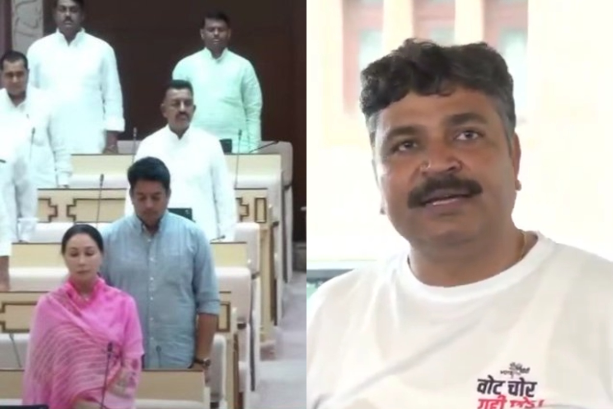 Rajasthan Assembly Monsoon Session: राजस्थान विधानसभा का मानसून सत्र सोमवार को हंगामेदार शुरुआत के साथ शुरू हुआ। सत्र के पहले दिन कांग्रेस विधायकों ने सदन में जोरदार हंगामा किया और ‘वोट चोर, गद्दी छोड़’ के नारे लगाए। विधायकों ने तख्तियां लहराकर अपना विरोध दर्ज किया। विधानसभा अध्यक्ष ने कांग्रेस विधायकों से शांत रहने की अपील की, लेकिन हंगामा जारी रहा।