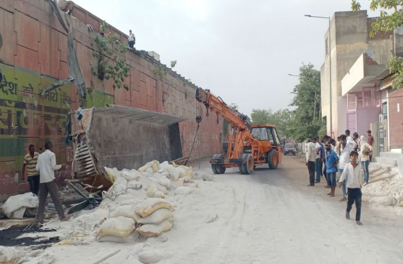 पुलिस प्रशासन की लापरवाही के चलते दिनभर दुर्घटना में क्षतिग्रस्त ट्रेलर व पाउडर से भरे कट्टे हाईवे की सर्विस लेन में बिखरे पड़े रहे। जिससे दिनभर इधर से गुजरने वाहन चालक परेशान होते रहे। इसके बाद गुरूवार दोपहर 5 बजे तीन के्रनों की सहायता से ट्रेलर को हटवाया गया। मिली जानकारी के अनुसार ट्रेलर अजीतगढ़ के हरिपुरा से टाइल्स के पाउडर कट्टे भरकर गुजरात जा रहा था बताया जा रहा है कि ट्रेलर का आगे का टायर फट गया जिससे ट्रक अनियंत्रित होकर हाईवे की करीब 25 फीट रैलिंग को तोड़ते हुए 30 फीट नीचे सर्विस लेन में गिरकर पलट गया।
