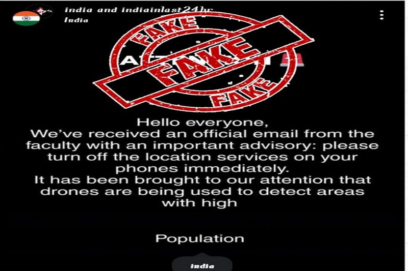 दरअसल, सोशल मीडिया पर एक मैसेज वायरल हो रहा है। इस मैसेज में लिखा है ‘सभी को नमस्कार, हमें संबंधित एजेंसी से एक महत्वपूर्ण आधिकारिक ईमेल प्राप्त हुआ है। कृपया सभी अपने फोन पर लोकेशन सेवाओं को तुरंत बंद कर दें।’ इसी मैसेज में आगे कहा गया है कि ‘यह हमारे ध्यान में लाया गया है कि अधिक जनसंख्या वाले क्षेत्रों का पता लगाने के लिए ड्रोन का उपयोग किया जा रहा है।’