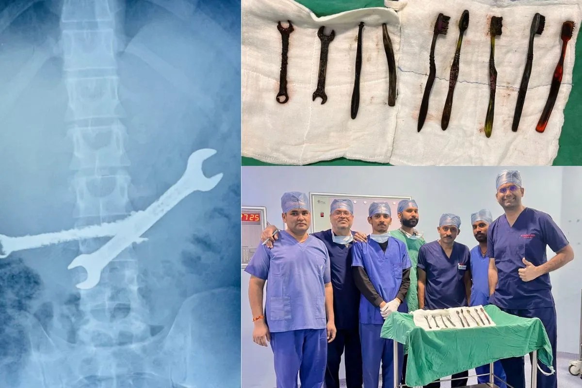 राजधानी में 26 वर्षीय युवक के पेट का ऑपरेशन कर डॉक्टरों ने 2 लोहे के पाने और 7 टूथब्रश निकाले है। हालत इतनी गंभीर थी कि अगर समय पर ऑपरेशन नहीं होता तो युवक का स्टोमक फट सकता था। यह सर्जरी एक निजी अस्पताल में की गई। मरीज 26 दिसंबर को भीलवाड़ा से तेज पेट दर्द की शिकायत लेकर जयपुर में निजी अस्पताल पहुंचा था। शुरुआती जांच में दर्द की वजह साफ नहीं हो सकी, लेकिन जब सोनोग्राफी करवाई गई तो डॉक्टर भी हैरान रह गए। जांच में पेट के अंदर बड़ी मात्रा में ठोस और नुकीली वस्तुएं नजर आईं। इसके बाद तुरंत सीनियर गैस्ट्रो सर्जन डॉ. तन्मय पारीक की टीम ने मरीज को ऑपरेशन के लिए तैयार किया।