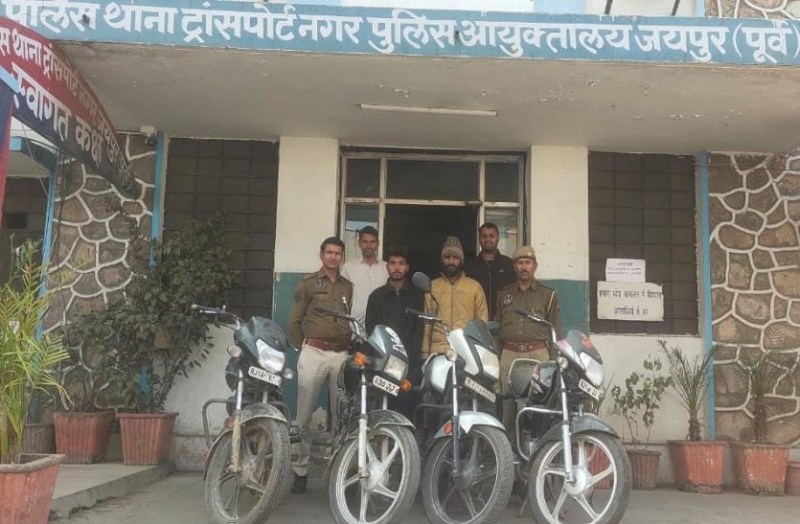 जयपुर। ट्रांसपोर्ट नगर थाना पुलिस ने रविवार को दो शातिर वाहन चोरों को गिरफ्तार कर उनके कब्जे से चोरी की तीन बाइक बरामद की हैं। डीसीपी (पूर्व) ज्ञानचंद यादव ने बताया कि गिरफ्तार आरोपी योगेन्द्र महावर और टीकम बैरवा जयसिंहपुरा खोर के रहने वाले हैं। पुलिस ने बताया की इस संबंध में 15 जनवरी को ट्रांसपोर्ट नगर निवासी राहुल असवाल ने बाइक चोरी का मामला दर्ज करवाया था। पुलिस ने आस-पास लगे सीसीटीवी कैमरों को खंगाला। चालानशुदा अपराधियों से पूछताछ की। पुलिस ने संदिग्ध आरोपी योगेन्द्र और टीकम को पकड़कर पूछताछ की तो उन्होंने चोरी करना कबूल कर लिया। पुलिस पूछताछ में आरोपियों ने जवाहर सर्कल, माणक चौक और विद्याधर नगर में चोरी की वारदात करनी कबूल की है। आरोपी पूर्व में वाहन चोरी और अन्य वारादत में चालानशुदा अपराधी है जो नशे के आदि है। आरोपी नशा करने के लिए सुनसाथ स्थान और आस-पास रैकी करके बाइक चोरी करते है।